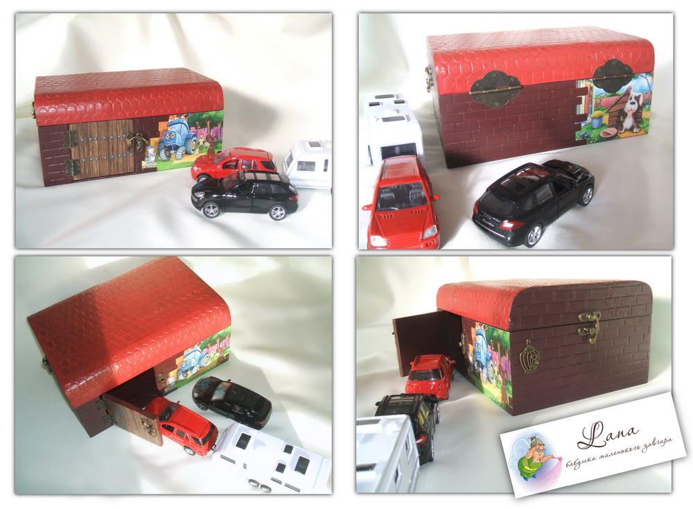 Если посчитать машинки тоже куклами, только мальчуковыми:ag:, то тут покажу и что я внуку делала. Это из деревянно-фанерного короба гараж. Там у него заодно и хранятся маленькие машинки.
