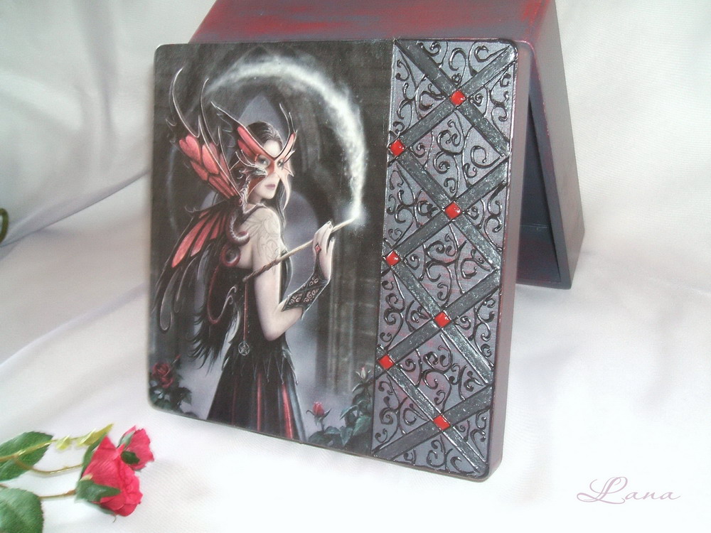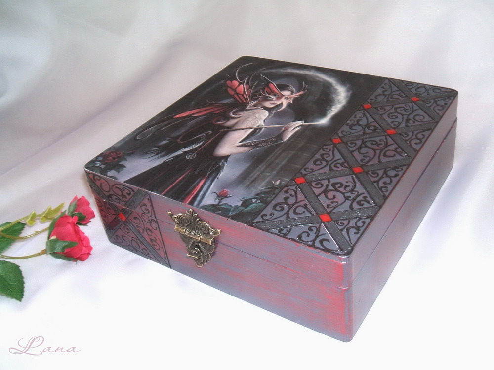 На лакировку иногда идет больше времени, чем на подготовку поверхности, приклейку мотива, покраску. Там же надо чтоб слои высыхали. Девочки-декупажницы с юмором относятся к своим привычкам. Утром проснулась, кофе попила, перед тем как на работу бежать, одним слоем пролакировать, чтоб, пока на работе, слой высох.:ag: