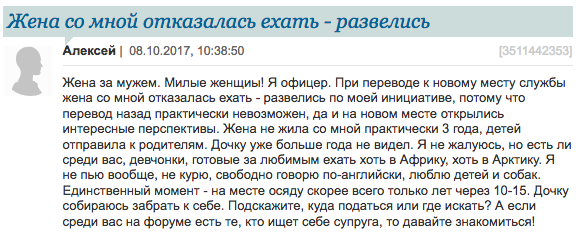 Но опять же, поехала бы я, при условии, что была бы на 100% уверена, что ему это действительно нужно. А вот тут и есть вся загвоздка... Никогда я, скорее всего, не смогу быть до конца уверенной в мужчине!