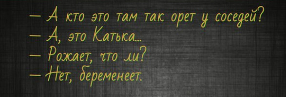 Он: Прочитал, что девушек снимать нужно прямо на выходе из кинотеатра после премьеры "50 оттенков серого". Повёлся. Так как кинотеатр у нас в городе один, то выбирать не приходилось. Надел костюм, который в последний раз носил на выпускном. Помыл свою "десятку". Встал у входа. Вижу - летит! Глаза горят, рот не закрывается. ГОДНОТА! Я не верил, пацаны, в эту хрень, но очень уж туго было без баб. Оторвался на ней на полную катушку. Думал - убью случайно. Нет, выжила. Ещё и глазки закатила, мол, нравится. Я с утра, как полагается, свалил, только она мои номера запомнила и через ментовку нашла. Сказала, что беременна. Пришлось жениться... В общем, пацаны, плётки-плётками, а про контрацепцию не забывайте