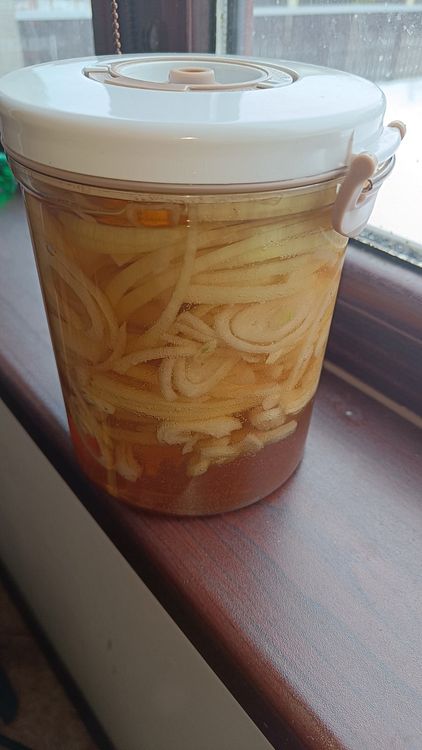 лук соль сахар бальзамированного уксуса для вкуса и две ложки простого уксуса