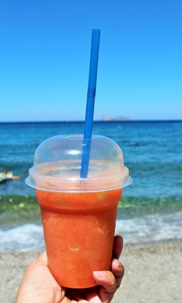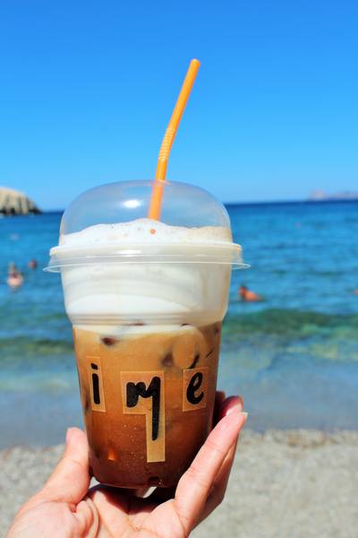 В Греции очень популярен фраппе - холодный кофе. Я попробовала, не понравился. А вот холодный капучино то, что надо. Ну и куда же без свежих фруктов со льдом :shuffle: