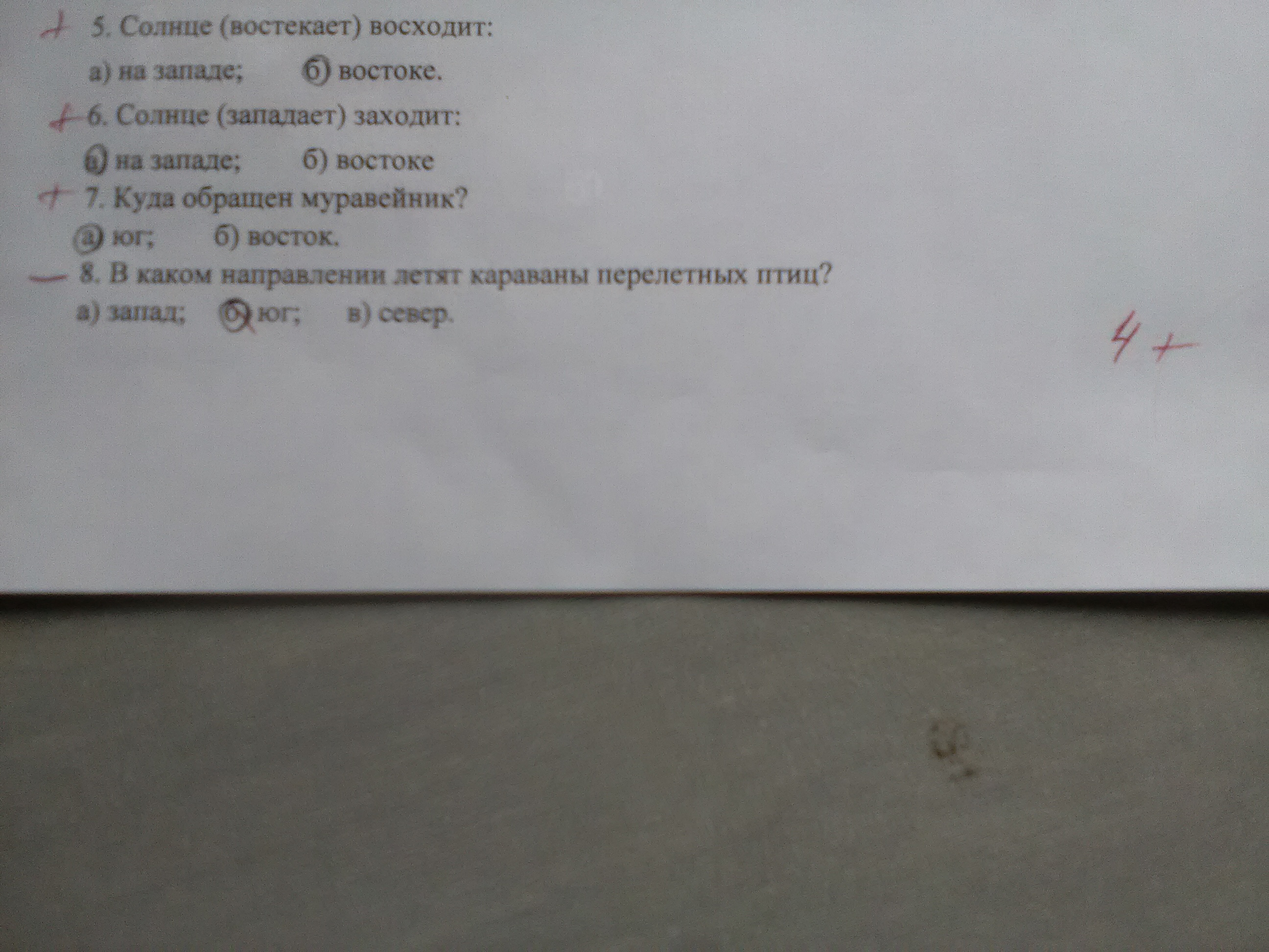 Ответ "на юг" перечеркнут красной пастой....